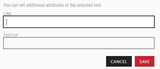 If the highlight has child elements, for example a text of a tooltip or URL, or any other child elements, a popup will appear allowing you to input this information.